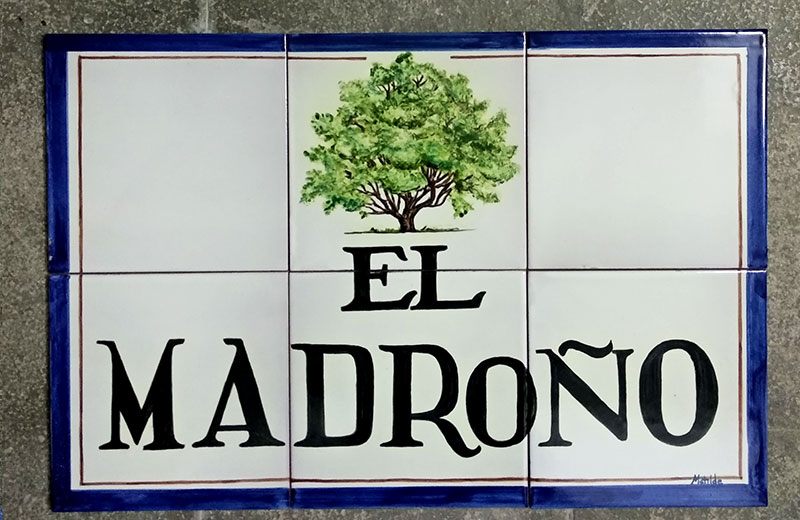 Para esta placa cerámica de 30 x 45 cms. ( 6 azulejos de 15 x 15), he pintado la tipografía antigua de las calles de Madrid para darle un aire retro y acompañado de un dibujo de un madroño, como su nombre indica.
