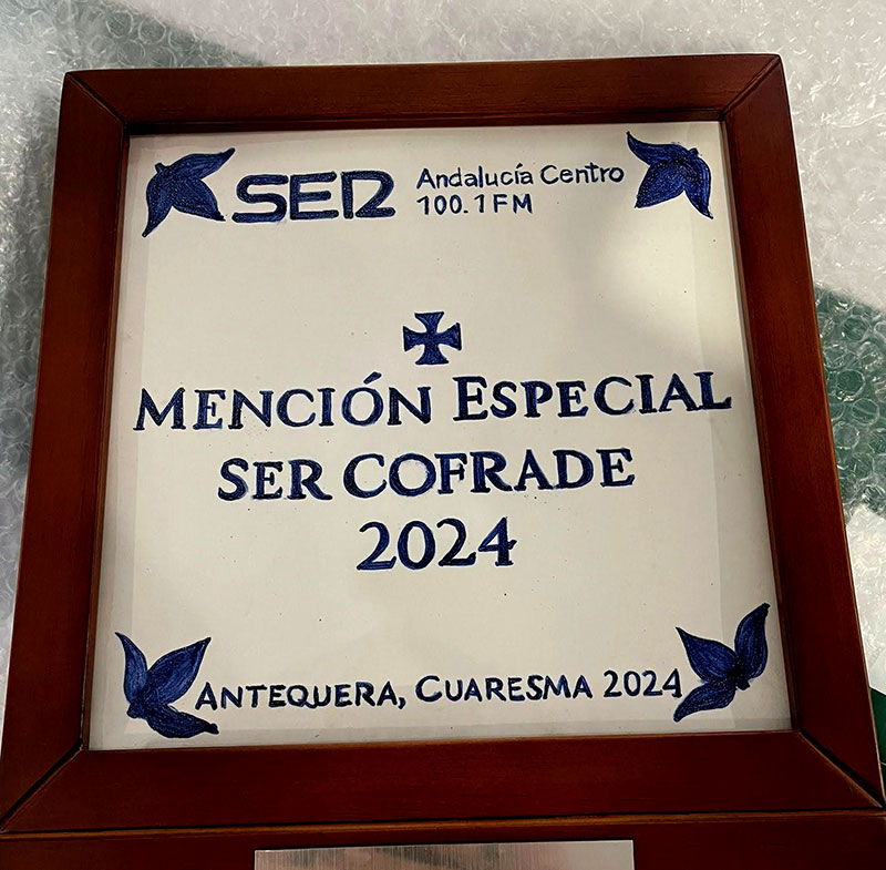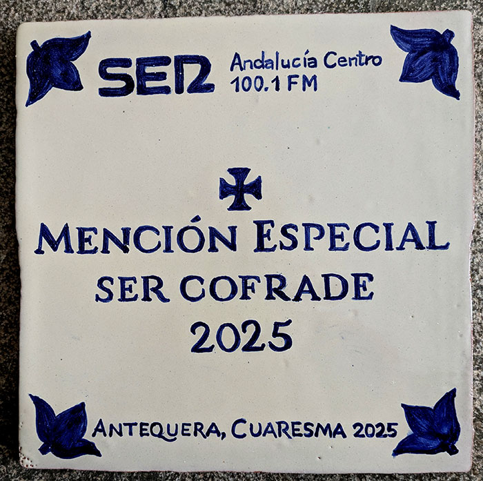 Azulejo conmemorativo de «Ser Cofrade», entregado por la Cadena Ser a Hermandades premiadas por méritos propios.